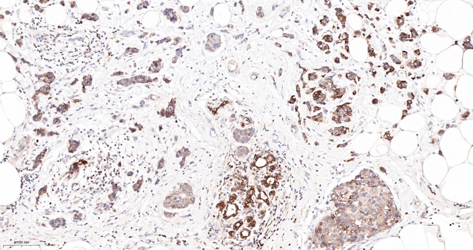 Paraformaldehyde-fixed, paraffin embedded Human Breast Cancer; Antigen retrieval by boiling in sodium citrate buffer (pH6.0) for 15 min; Antibody incubation with Bcl-2 Monoclonal Antibody, Unconjugated(bsm-61074R) at 1:200 overnight at 4°C, followed by conjugation to the SP Kit (Rabbit, SP-0023)and DAB (C-0010) staining.
