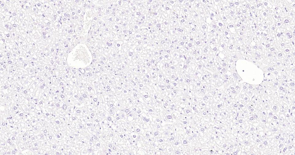 (Negative control) Paraformaldehyde-fixed, paraffin embedded Rat Liver; Antigen retrieval by boiling in sodium citrate buffer (pH6.0) for 15 min; Antibody incubation with TrkB Monoclonal Antibody, Unconjugated(bsm-61083R) at 1:200 overnight at 4°C, followed by conjugation to the SP Kit (Rabbit, SP-0023) and DAB (C-0010) staining.