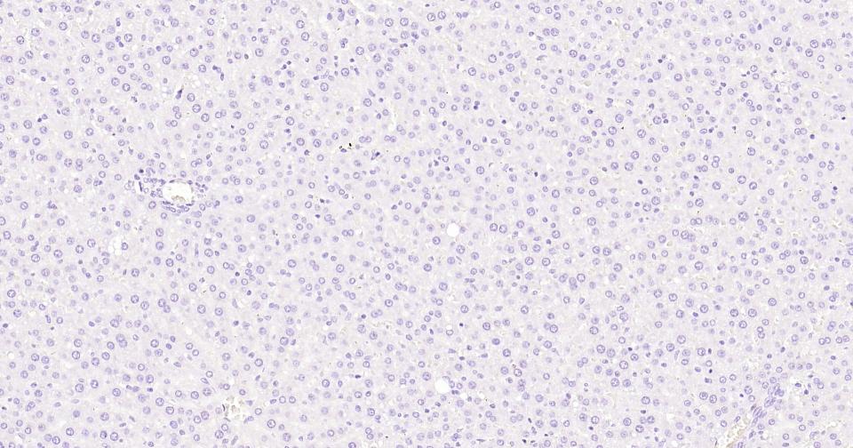 (Negative control) Paraformaldehyde-fixed, paraffin embedded Mouse Liver; Antigen retrieval by boiling in sodium citrate buffer (pH6.0) for 15 min; Antibody incubation with TrkB Monoclonal Antibody, Unconjugated(bsm-61083R) at 1:200 overnight at 4°C, followed by conjugation to the SP Kit (Rabbit, SP-0023) and DAB (C-0010) staining.
