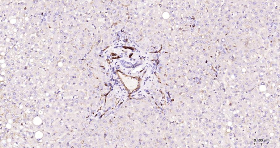 Paraformaldehyde-fixed, paraffin embedded Human Liver; Antigen retrieval by boiling in sodium citrate buffer (pH6.0) for 15 min; The section was incubated with CD31 Monoclonal Antibody, Unconjugated (bsm-43666M) at 1:200 overnight at 4°C, followed by conjugation to the bs-40296G-HRP and DAB (C-0010) staining.