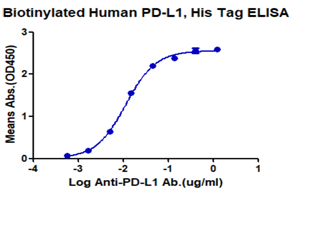 Immobilized Biotinylated Human PD-L1 at 0.5ug/ml (100ul/Well). Dose response curve for Anti-PD-L1 Ab. with the EC50 of 11.3ng/ml determined by ELISA.