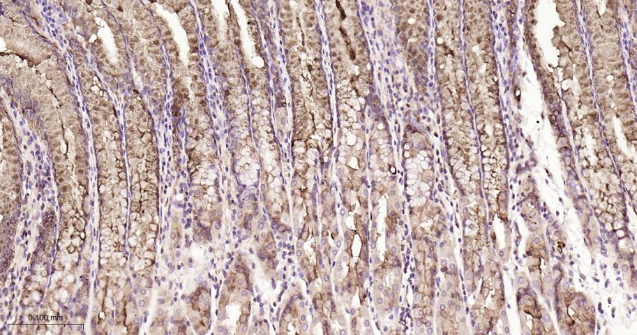 Paraformaldehyde-fixed, paraffin embedded Human Fundus; Antigen retrieval by boiling in sodium citrate buffer (pH6.0) for 15 min; Antibody incubation with Trefoil factor 1 Monoclonal Antibody, Unconjugated(bsm-54139R) at 1:200 overnight at 4°C, followed by conjugation to the bs-0295G-HRP and DAB (C-0010) staining.