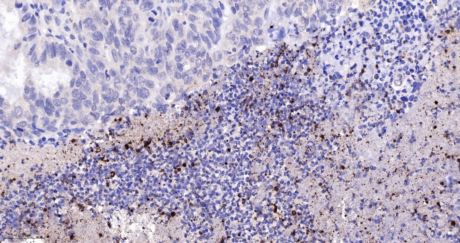 Paraformaldehyde-fixed, paraffin embedded Human Ovarian Cancer; Antigen retrieval by boiling in sodium citrate buffer (pH6.0) for 15 min; The section was incubated with Citrulline-Histone H3 (Arg2/8/17) Monoclonal Antibody, Unconjugated (bsm-60866R) at 1:200 overnight at 4°C, followed by conjugation to the bs-0295G-HRP and DAB (C-0010) staining.
