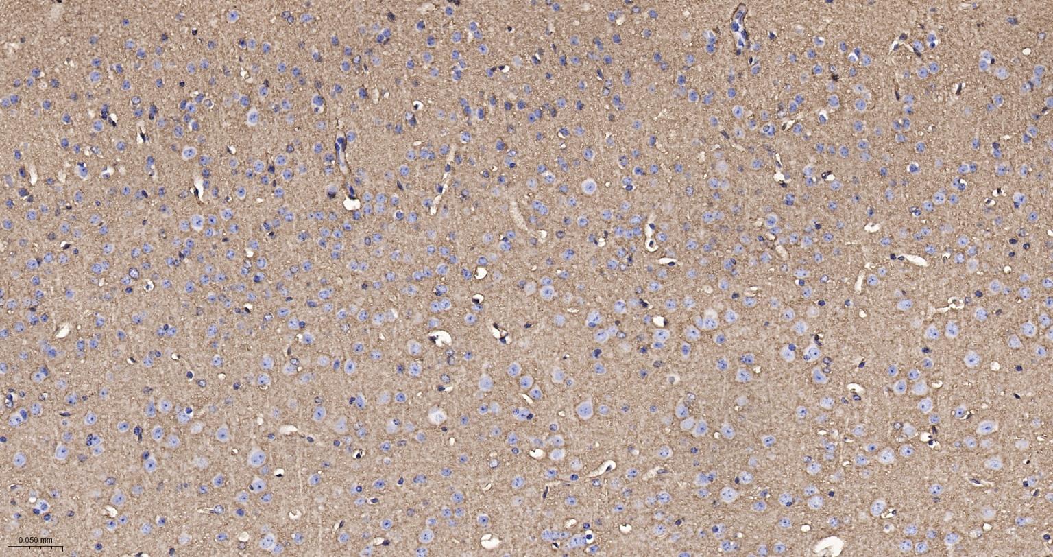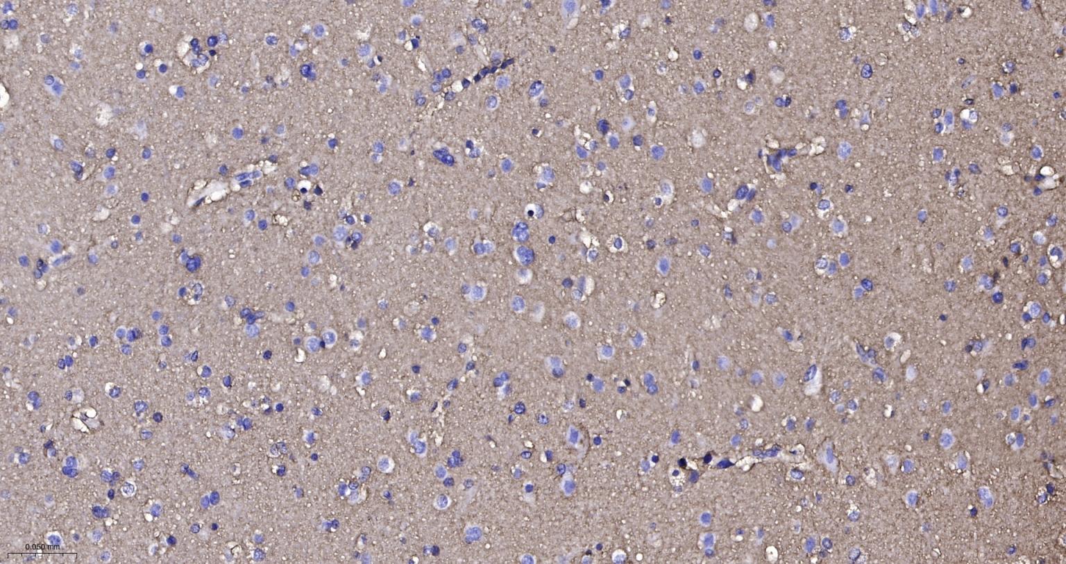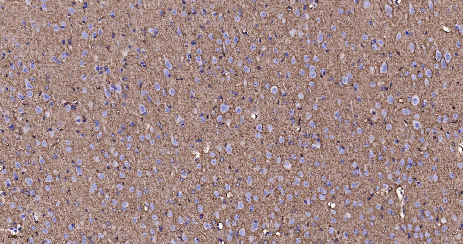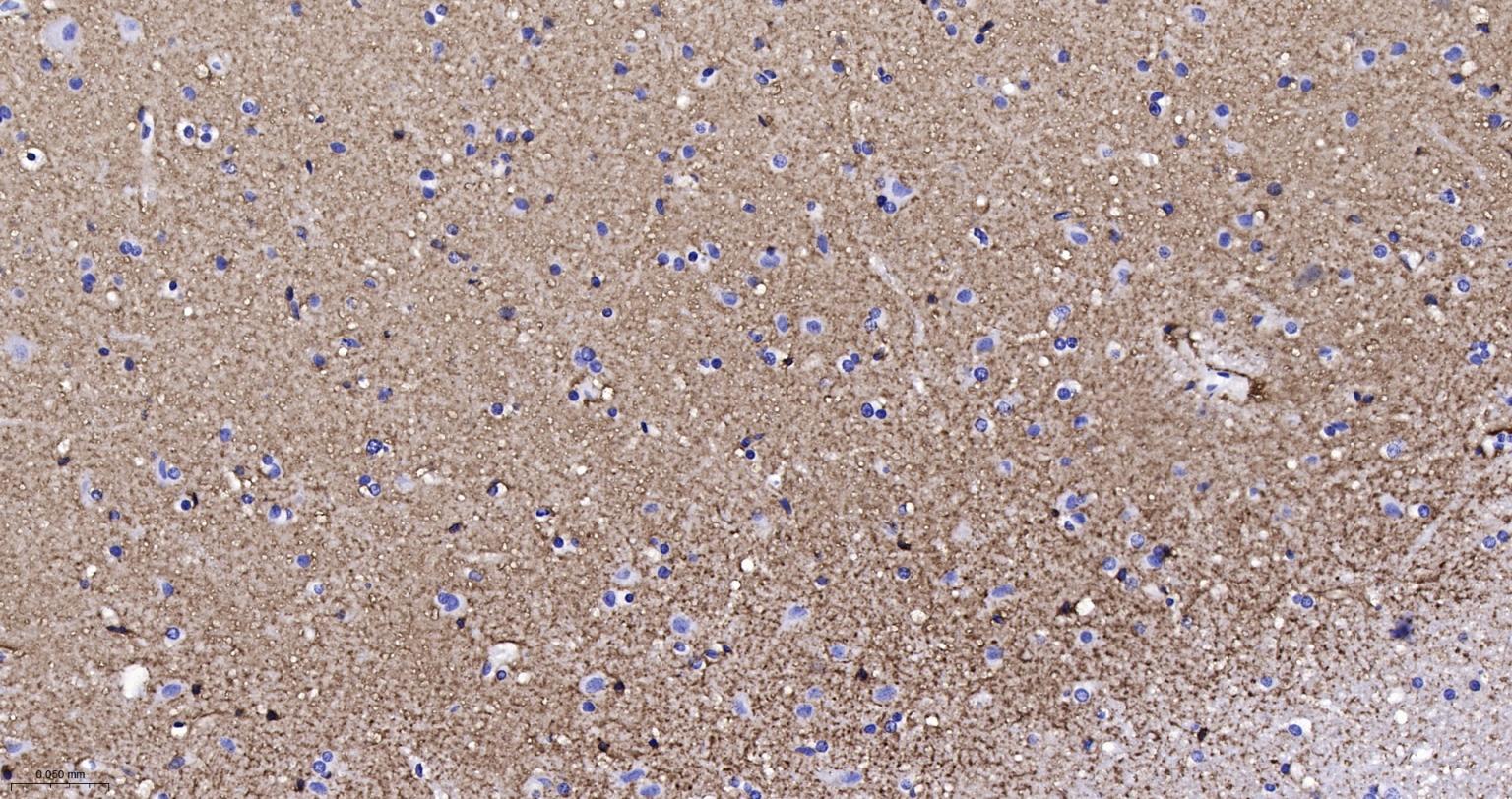 Paraformaldehyde-fixed, paraffin embedded Rat Cerebrum; Antigen retrieval by boiling in sodium citrate buffer (pH6.0) for 15 min; Antibody incubation with EAAT1 Monoclonal Antibody, Unconjugated(bsm-60880R) at 1:200 overnight at 4°C, followed by conjugation to the bs-0295G-HRP and DAB (C-0010) staining.