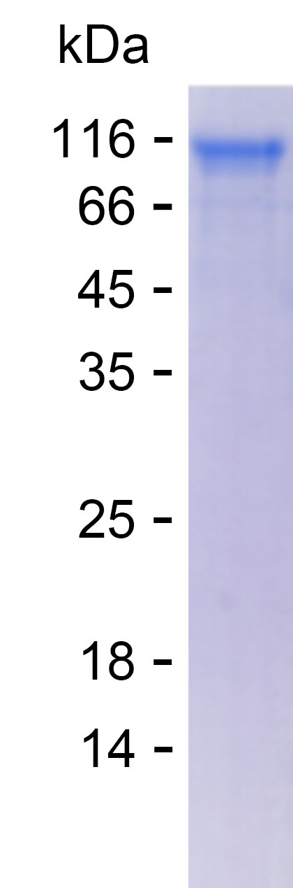 Note: The molecular weight of the protein as observed on SDS-PAGE under reducing conditions may differ from its predicted value, due to variations in electrophoretic mobilities.