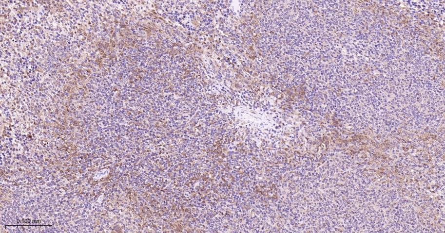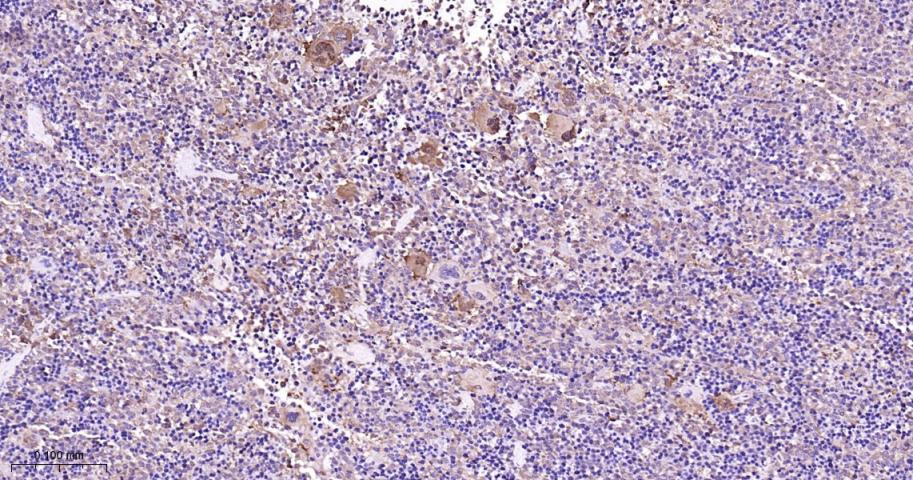 Paraformaldehyde-fixed, paraffin embedded Rat Spleen; Antigen retrieval by boiling in sodium citrate buffer (pH6.0) for 15 min; Antibody incubation with p38 Monoclonal Antibody, Unconjugated(bsm-55529R) at 1:200 overnight at 4°C, followed by conjugation to the bs-0295G-HRP and DAB (C-0010) staining.