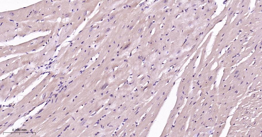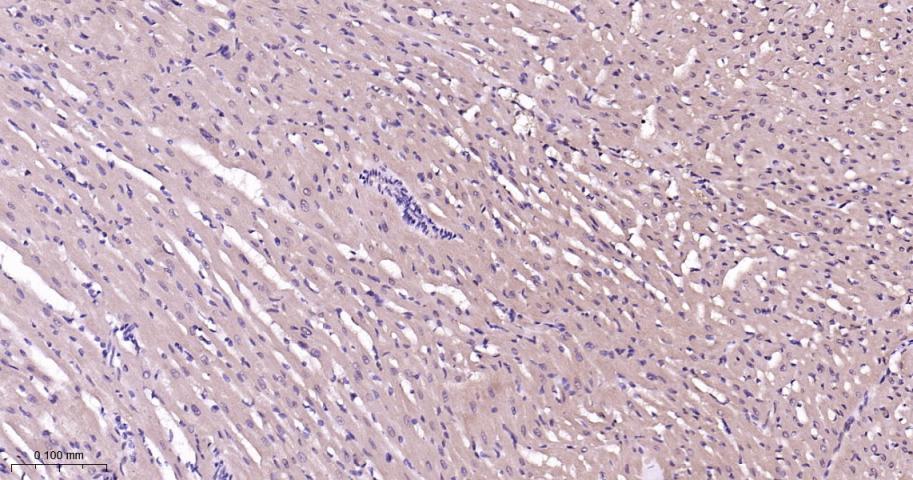 Paraformaldehyde-fixed, paraffin embedded Rat Heart; Antigen retrieval by boiling in sodium citrate buffer (pH6.0) for 15 min; Antibody incubation with p38 Monoclonal Antibody, Unconjugated(bsm-55529R) at 1:200 overnight at 4°C, followed by conjugation to the bs-0295G-HRP and DAB (C-0010) staining.