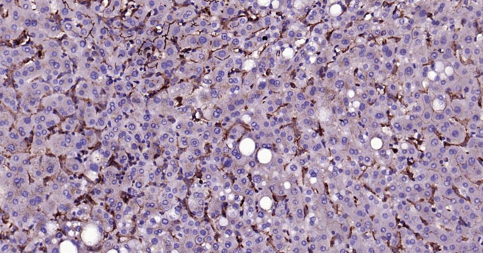 Paraformaldehyde-fixed, paraffin embedded Human Liver; Antigen retrieval by boiling in sodium citrate buffer (pH6.0) for 15 min; Antibody incubation with CD33 Monoclonal Antibody, Unconjugated(bsm-60920R) at 1:200 overnight at 4°C, followed by conjugation to the bs-0295G-HRP and DAB (C-0010) staining.