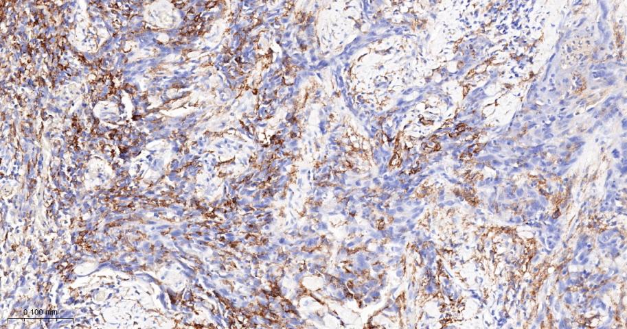 Paraformaldehyde-fixed, paraffin embedded Human cervical cancer; Antigen retrieval by boiling in sodium citrate buffer (pH6.0) for 15 min; The section was incubated with CD16A Monoclonal Antibody, Unconjugated (bsm-43212M) at 1:200 overnight at 4°C, followed by conjugation to the bs-40296G-HRP and DAB (C-0010) staining.