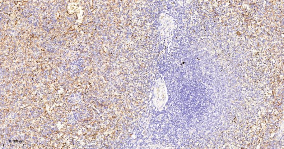 Paraformaldehyde-fixed, paraffin embedded Human Spleen; Antigen retrieval by boiling in sodium citrate buffer (pH6.0) for 15 min; The section was incubated with CD16A Monoclonal Antibody, Unconjugated (bsm-43212M) at 1:200 overnight at 4°C, followed by conjugation to the bs-40296G-HRP and DAB (C-0010) staining.