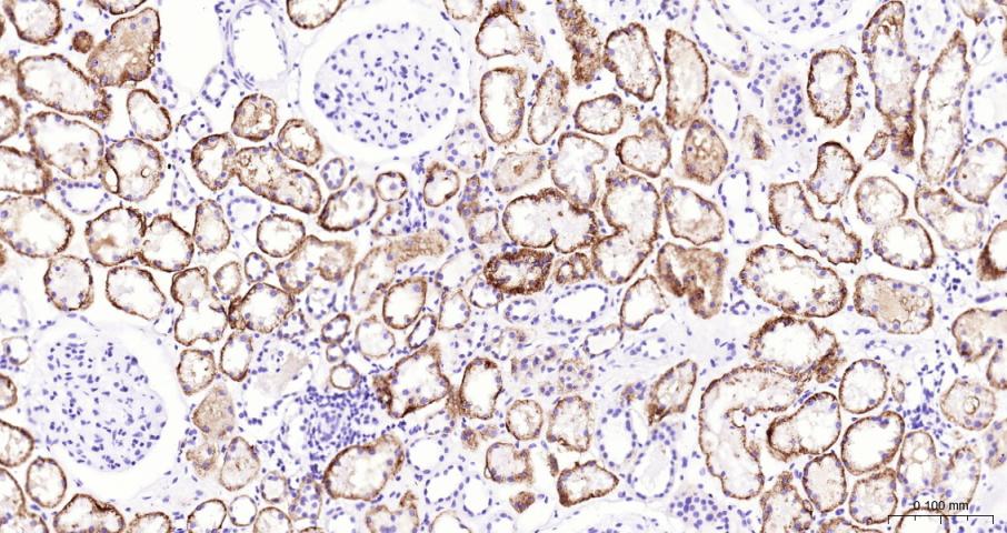 Paraformaldehyde-fixed, paraffin embedded Human Kidney; Antigen retrieval by boiling in sodium citrate buffer (pH6.0) for 15 min; The section was incubated with Syndecan-1 Monoclonal Antibody, Unconjugated (bsm-43670M) at 1:200 overnight at 4°C, followed by conjugation to the bs-40296G-HRP and DAB (C-0010) staining.