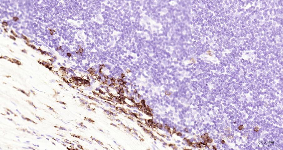 Paraformaldehyde-fixed, paraffin embedded Human Tonsil; Antigen retrieval by boiling in sodium citrate buffer (pH6.0) for 15 min; The section was incubated with Syndecan-1 Monoclonal Antibody, Unconjugated (bsm-43670M) at 1:200 overnight at 4°C, followed by conjugation to the bs-40296G-HRP and DAB (C-0010) staining.