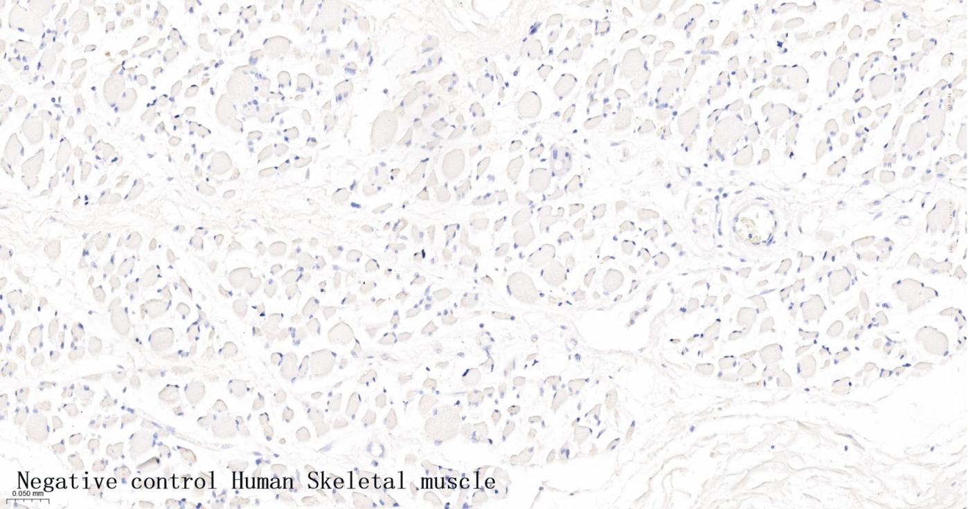 (Negative control) Paraformaldehyde-fixed, paraffin embedded Human Skeletal muscle; Antigen retrieval by boiling in sodium citrate buffer (pH6.0) for 15 min; The section was incubated with NPHS2 Monoclonal Antibody, Unconjugated (bsm-63061R) at 1:200 overnight at 4°C, followed by conjugation to the bs-0295G-HRP and DAB (C-0010) staining.