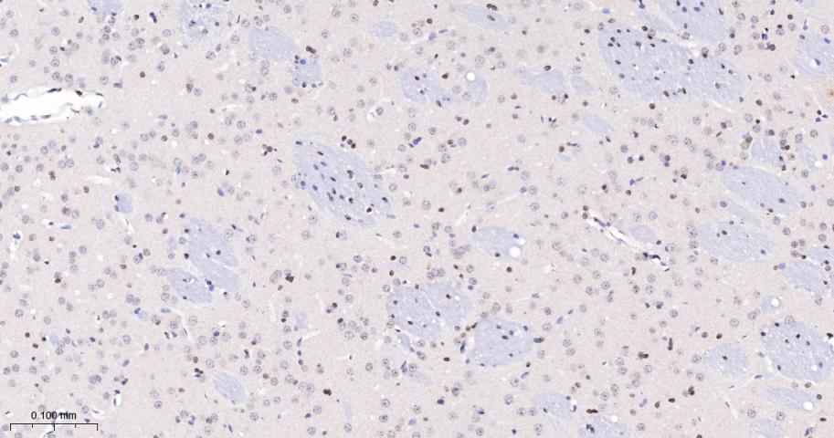 Paraformaldehyde-fixed, paraffin embedded Mouse Cerebrum; Antigen retrieval by boiling in sodium citrate buffer (pH6.0) for 15 min; Antibody incubation with phospho-STAT5 (Y694) Monoclonal Antibody, Unconjugated(bsm-54554R) at 1:200 overnight at 4°C, followed by conjugation to the bs-0295G-HRP and DAB (C-0010) staining.
