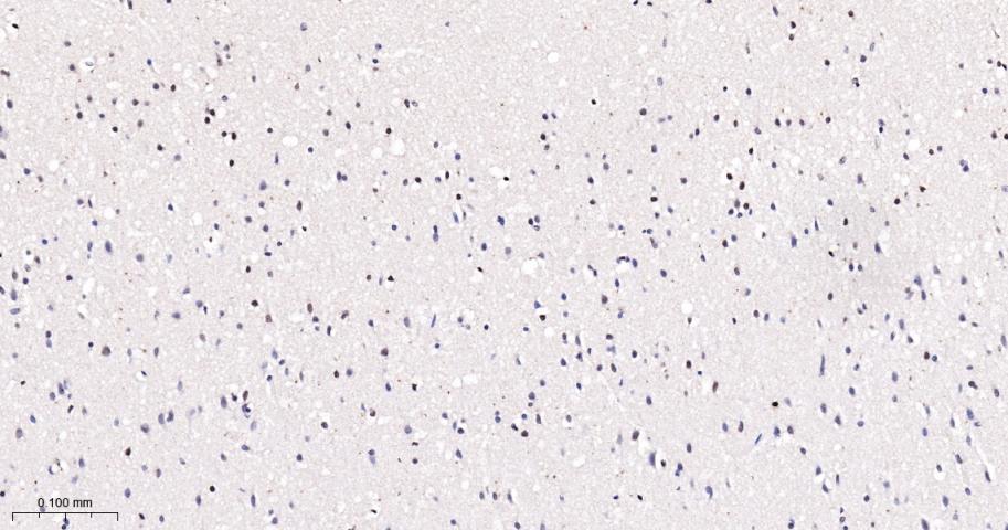 Paraformaldehyde-fixed, paraffin embedded Rat Cerebrum; Antigen retrieval by boiling in sodium citrate buffer (pH6.0) for 15 min; Antibody incubation with phospho-STAT5 (Y694) Monoclonal Antibody, Unconjugated(bsm-54554R) at 1:200 overnight at 4°C, followed by conjugation to the bs-0295G-HRP and DAB (C-0010) staining.