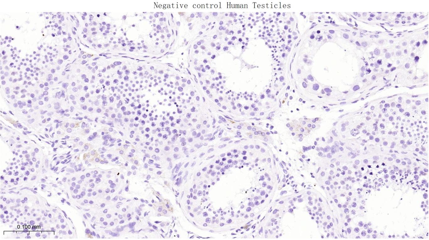 (Negative control) Paraformaldehyde-fixed, paraffin embedded Human Testicles; Antigen retrieval by boiling in sodium citrate buffer (pH6.0) for 15 min; Antibody incubation with NKX3.1 Monoclonal Antibody, Unconjugated(bsm-33928M) at 1:200 overnight at 4°C, followed by conjugation to the bs-40296G-HRP and DAB (C-0010) staining.