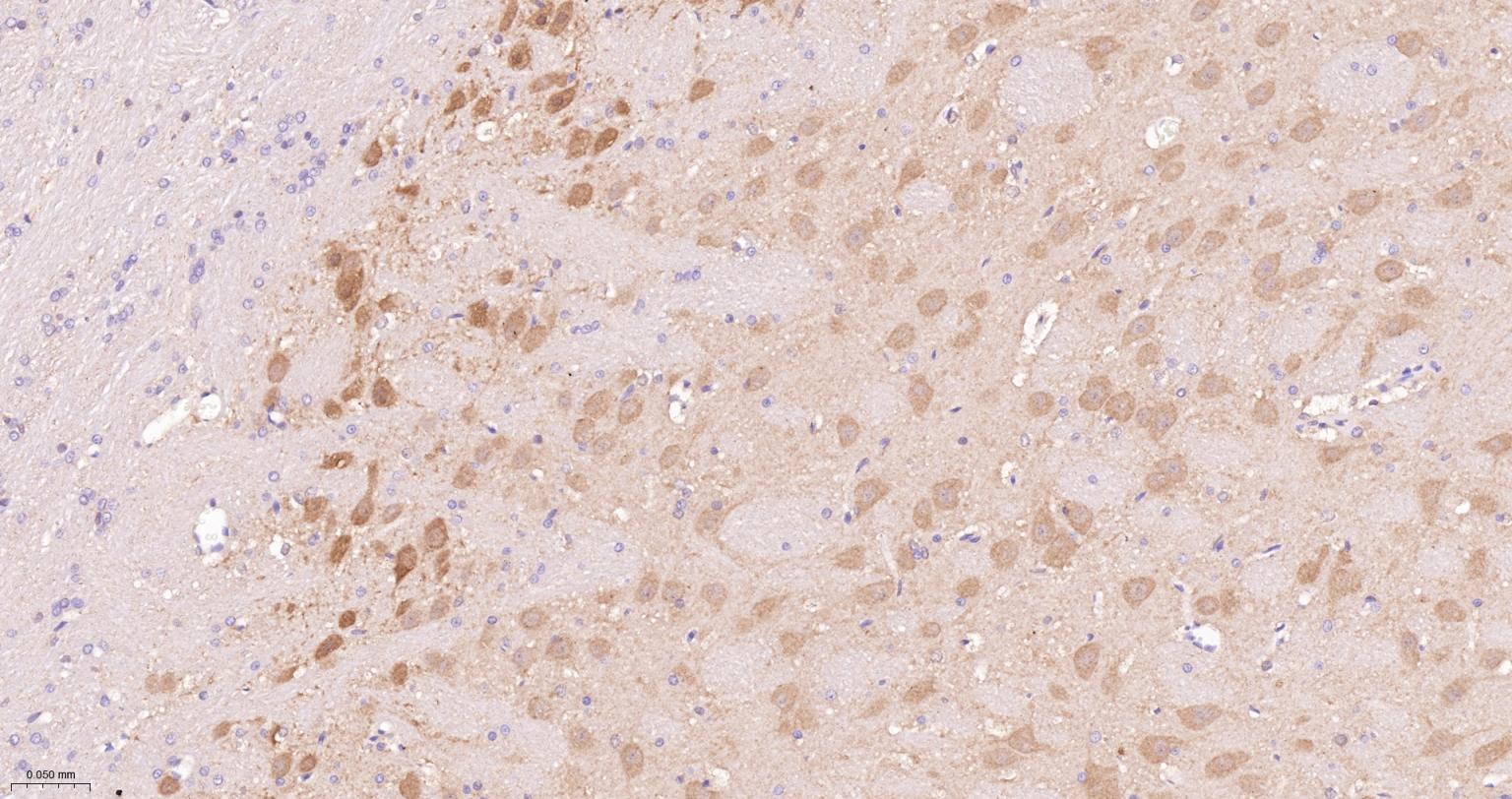 Paraformaldehyde-fixed, paraffin embedded Human Cerebrum; Antigen retrieval by boiling in sodium citrate buffer (pH6.0) for 15 min; The section was incubated with AKT Monoclonal Antibody, Unconjugated (bsm-63324R) at 1:200 overnight at 4°C, followed by conjugation to the bs-0295G-HRP and DAB (C-0010) staining.