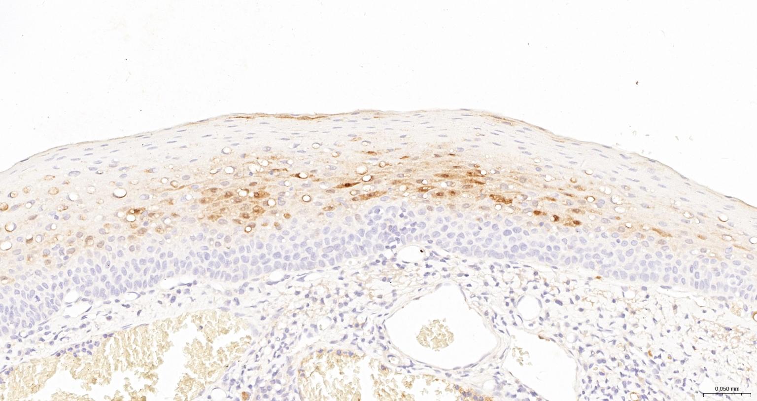 Paraformaldehyde-fixed, paraffin embedded Human Tonsil; Antigen retrieval by boiling in sodium citrate buffer (pH6.0) for 15 min; The section was incubated with SERPINB3 Monoclonal Antibody, Unconjugated (bsm-43190R) at 1:200 overnight at 4°C, followed by conjugation to the bs-0295G-HRP and DAB (C-0010) staining.