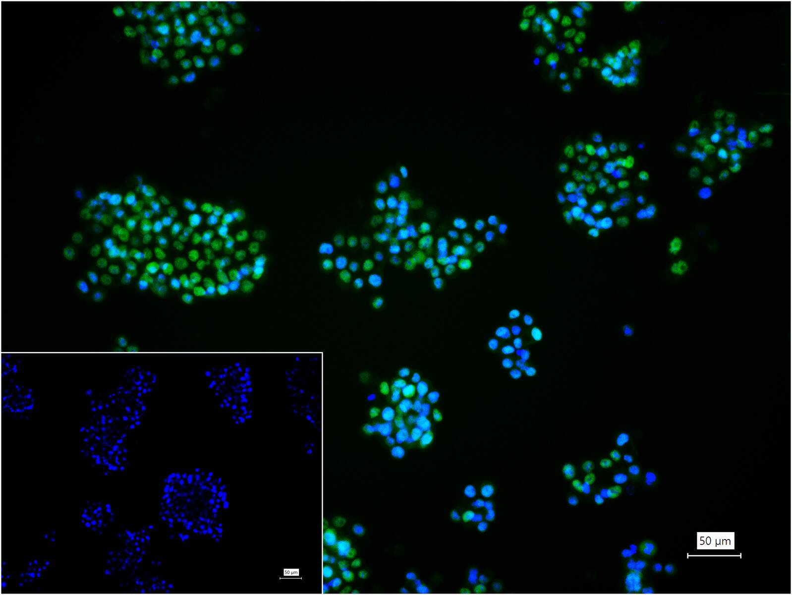 4% Paraformaldehyde-fixed HT-29 (H) cell; Triton X-100 at r.t. for 20 min; Antibody incubation with (phospho-P53(S33)) monoclonal Antibody, unconjugated (bsm-63095R) 1:100, 90 min at 37°C; followed by BF488 conjugated Goat Anti-Rabbit IgG antibody (green, bs-60295G-BF488) at 37°C for 90 min, DAPI (blue, C02-04002) was used to stain the cell nuclei. PBS instead of the primary antibody was used as the blank control.