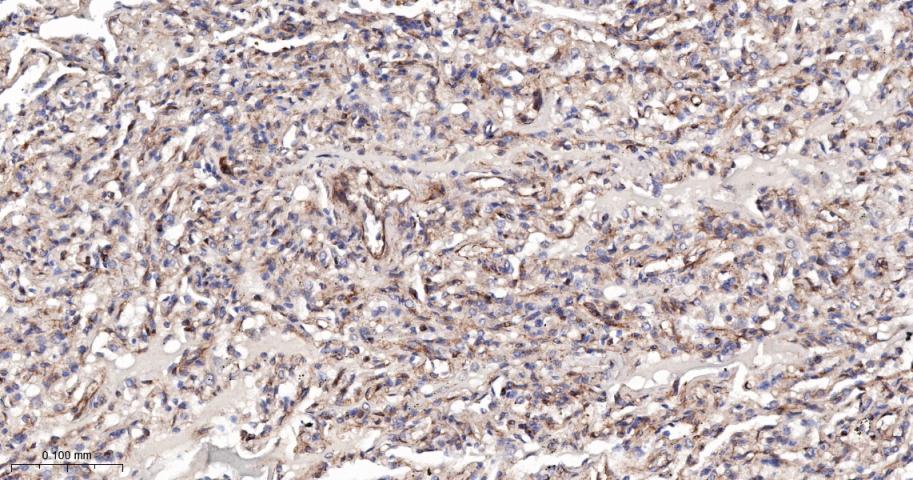 Paraformaldehyde-fixed, paraffin embedded Human Lung; Antigen retrieval by boiling in sodium citrate buffer (pH6.0) for 15 min; The section was incubated with Fragilis Monoclonal Antibody, Unconjugated (bsm-63221R) at 1:200 overnight at 4°C, followed by conjugation to the bs-0295G-HRP and DAB (C-0010) staining.