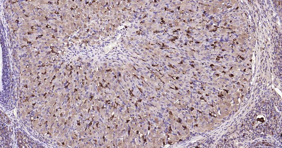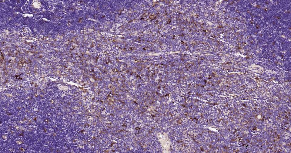 Immunohistochemical analysis of paraffin embedded rat thymus tissue slide using IHC0326R (Rat Galectin 3 Kit).