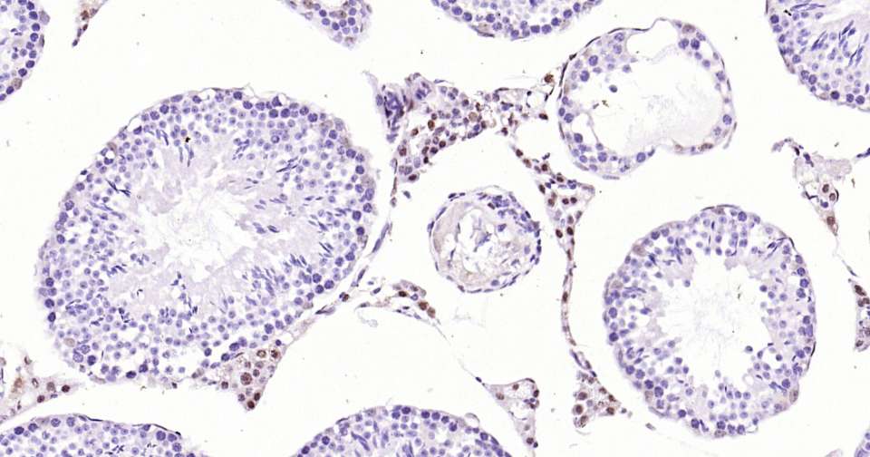 Immunohistochemical analysis of paraffin embedded mouse testis tissue slide using IHC0327 (Androgen receptor Kit).