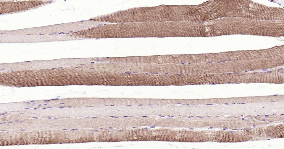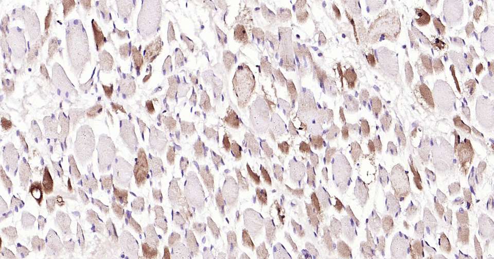 Immunohistochemical analysis of paraffin embedded human skeletal muscle tissue slide using IHC0329 (LGR5/GPR49 Kit).