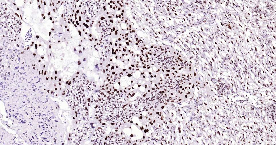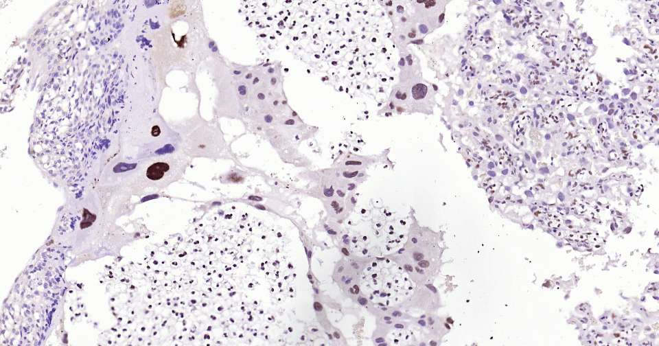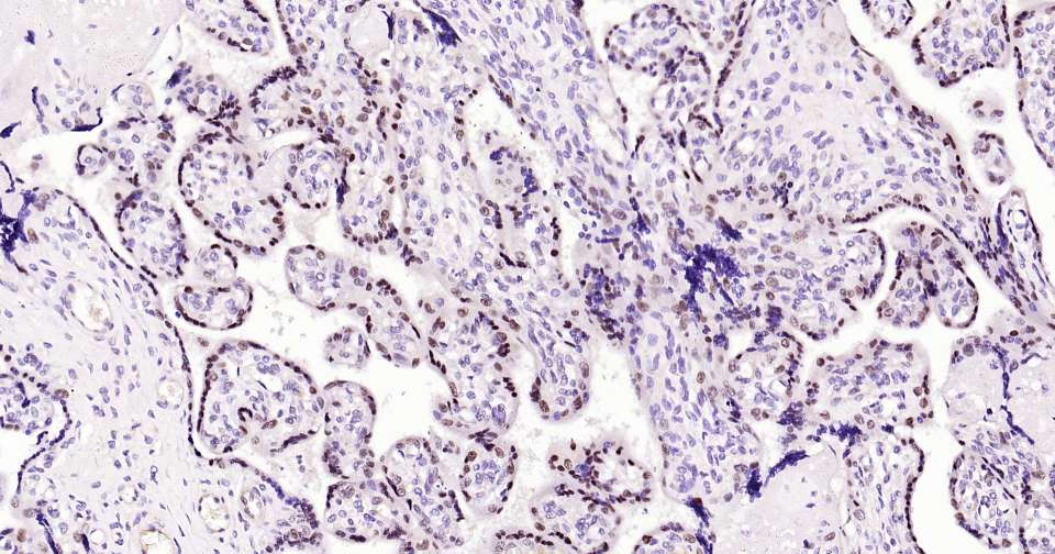 Immunohistochemical analysis of paraffin embedded human placenta tissue slide using IHC0337 (Dnmt3a Kit).