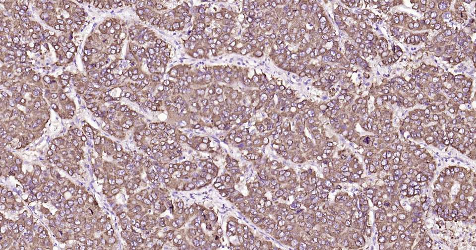 Immunohistochemical analysis of paraffin embedded human hepatocellular carcinoma tissue slide using IHC0340H (Human Shh Kit).