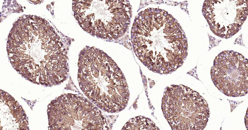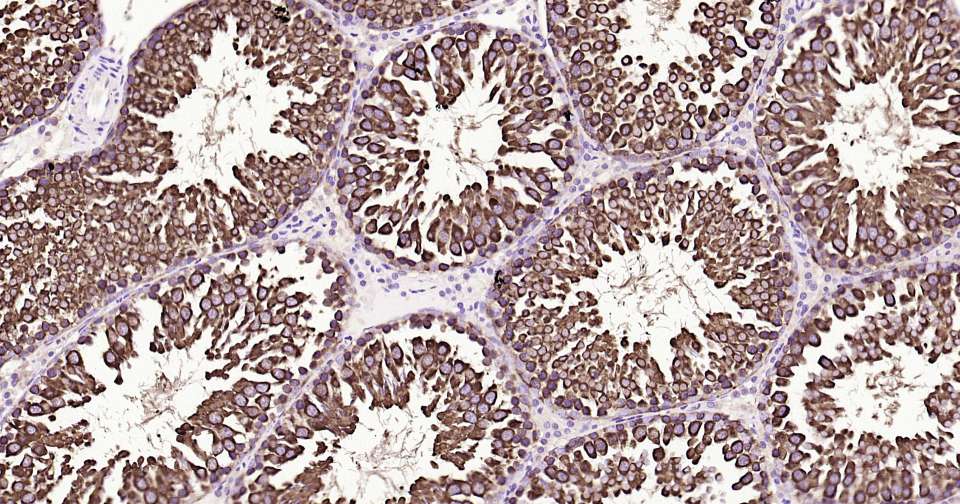 Immunohistochemical analysis of paraffin embedded mouse testis tissue slide using IHC0341 (Hsp90 alpha Kit).