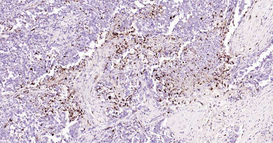 Immunohistochemical analysis of paraffin embedded human pancreatic cancer tissue slide using IHC0343H (Human Osteopontin Kit).