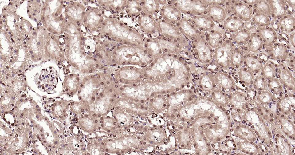 Immunohistochemical analysis of paraffin embedded rat kidney tissue slide using IHC0349R (Rat K27-linkage specific ubiquitin Kit).