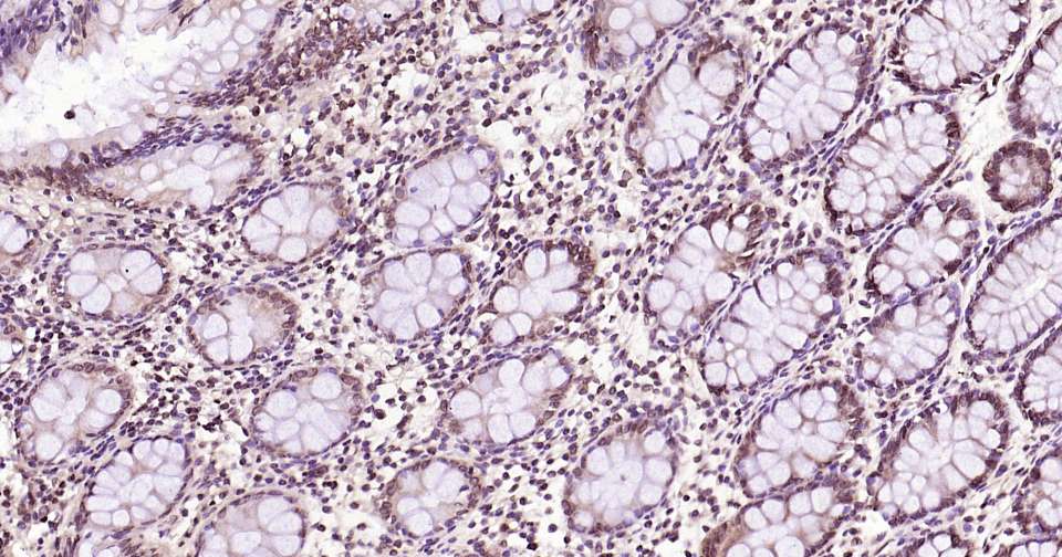 Immunohistochemical analysis of paraffin embedded human colon tissue slide using IHC0350 (Ubiquitin Kit).