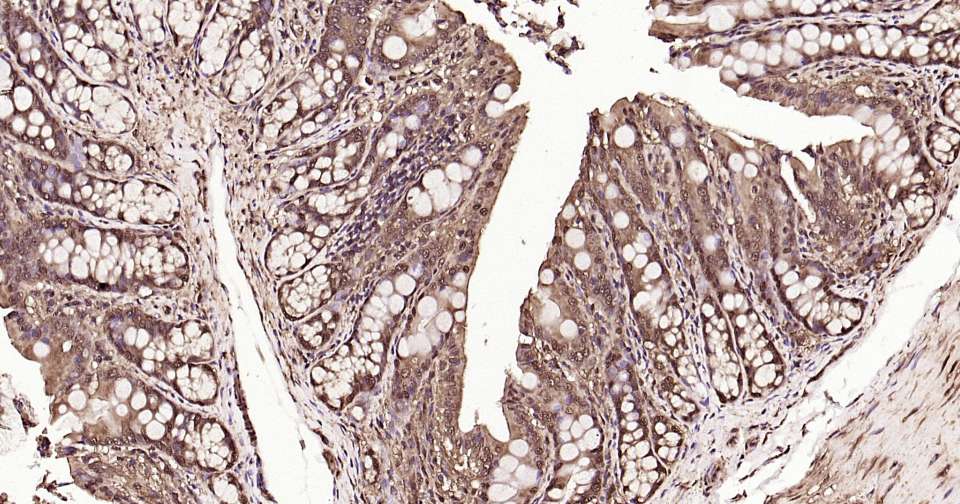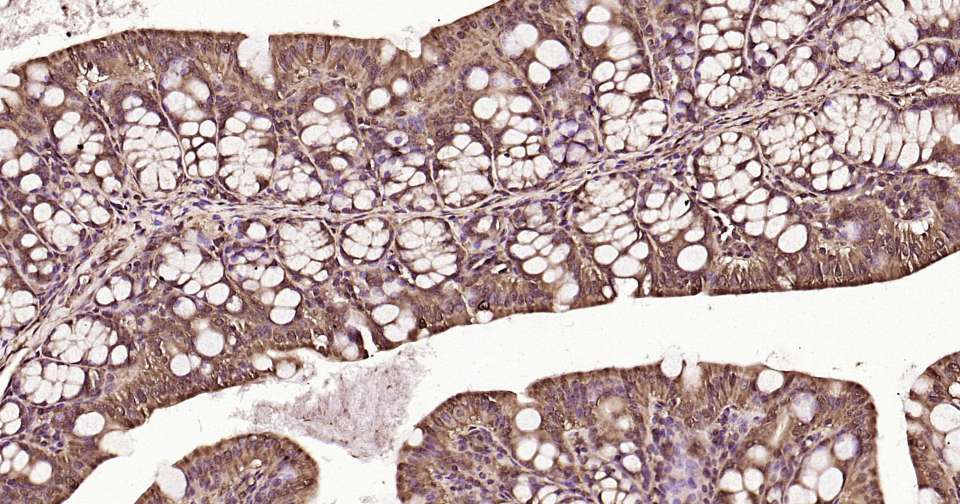 Immunohistochemical analysis of paraffin embedded mouse colon tissue slide using IHC0350 (Ubiquitin Kit).