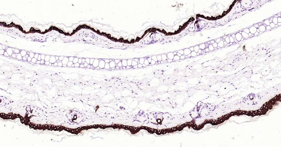 Immunohistochemical analysis of paraffin embedded mouse skin tissue slide using IHC0360 (CK10/Cytokeratin 10 Kit).