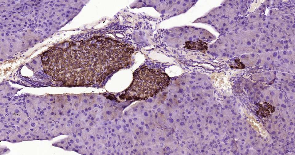 Immunohistochemical analysis of paraffin embedded mouse pancreas tissue slide using IHC0364 (Notch1 Kit).