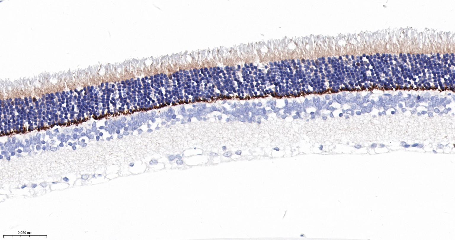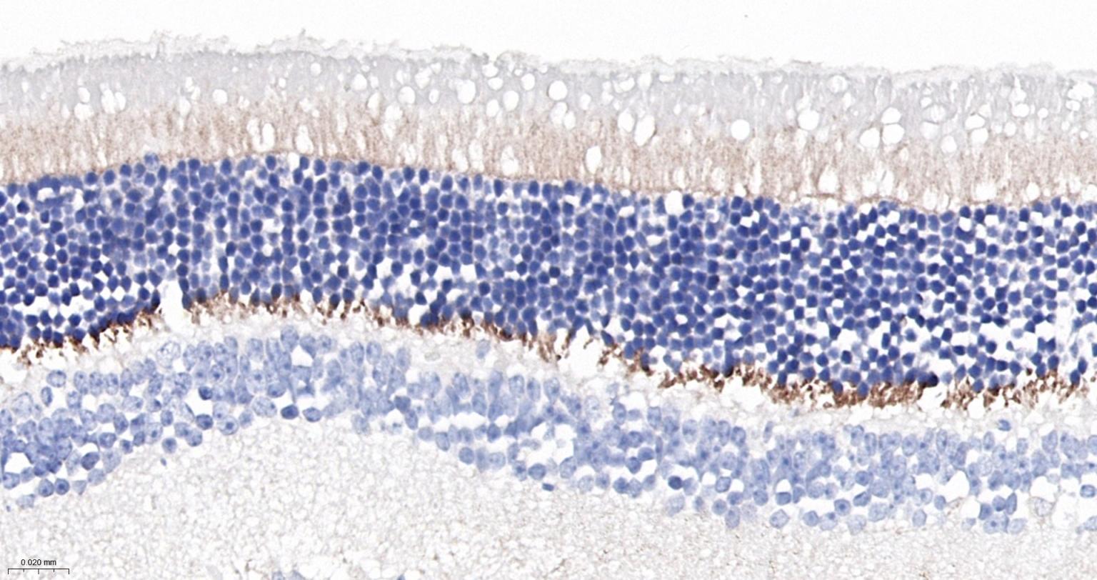 Paraformaldehyde-fixed, paraffin embedded Mouse Eye; Antigen retrieval by boiling in sodium citrate buffer (pH6.0) for 15 min; The section was incubated with PSD95 Monoclonal Antibody, Unconjugated (bsm-55665R) at 1:200 overnight at 4°C, followed by conjugation to the bs-0295G-HRP and DAB (C-0010) staining.