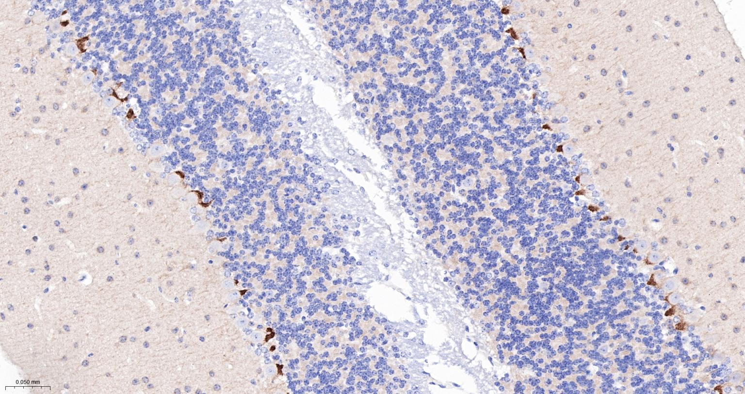 Paraformaldehyde-fixed, paraffin embedded Rat Cerebellum; Antigen retrieval by boiling in sodium citrate buffer (pH6.0) for 15 min; The section was incubated with PSD95 Monoclonal Antibody, Unconjugated (bsm-55665R) at 1:200 overnight at 4°C, followed by conjugation to the bs-0295G-HRP and DAB (C-0010) staining.