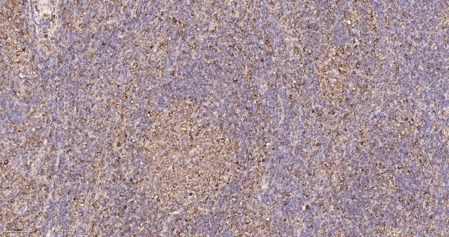 Paraformaldehyde-fixed, paraffin embedded Human Lymph; Antigen retrieval by boiling in sodium citrate buffer (pH6.0) for 15 min; The section was incubated with Human IgM Monoclonal Antibody, Unconjugated (bsm-52860R) at 1:200 overnight at 4°C, followed by conjugation to the bs-0295G-HRP and DAB (C-0010) staining.
