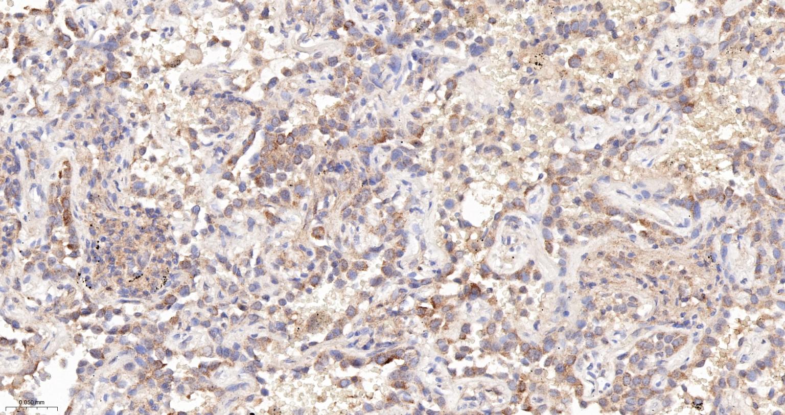 Paraformaldehyde-fixed, paraffin embedded Human Lung Cancer; Antigen retrieval by boiling in sodium citrate buffer (pH6.0) for 15 min; Antibody incubation with PTEN Monoclonal Antibody, Unconjugated(bsm-52369R) at 1:200 overnight at 4°C, followed by conjugation to the bs-0295G-HRP and DAB (C-0010) staining.