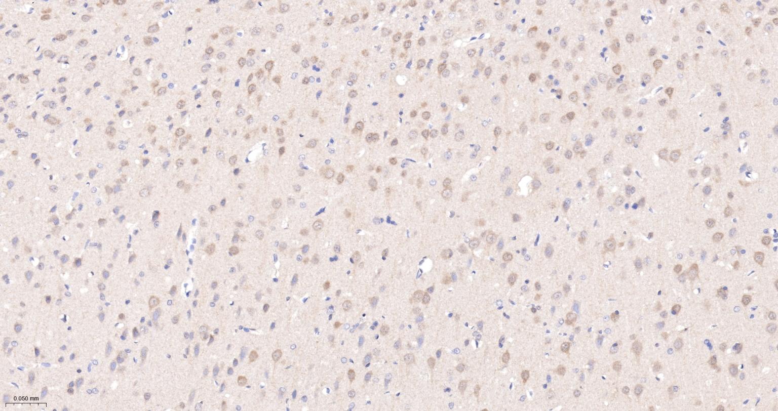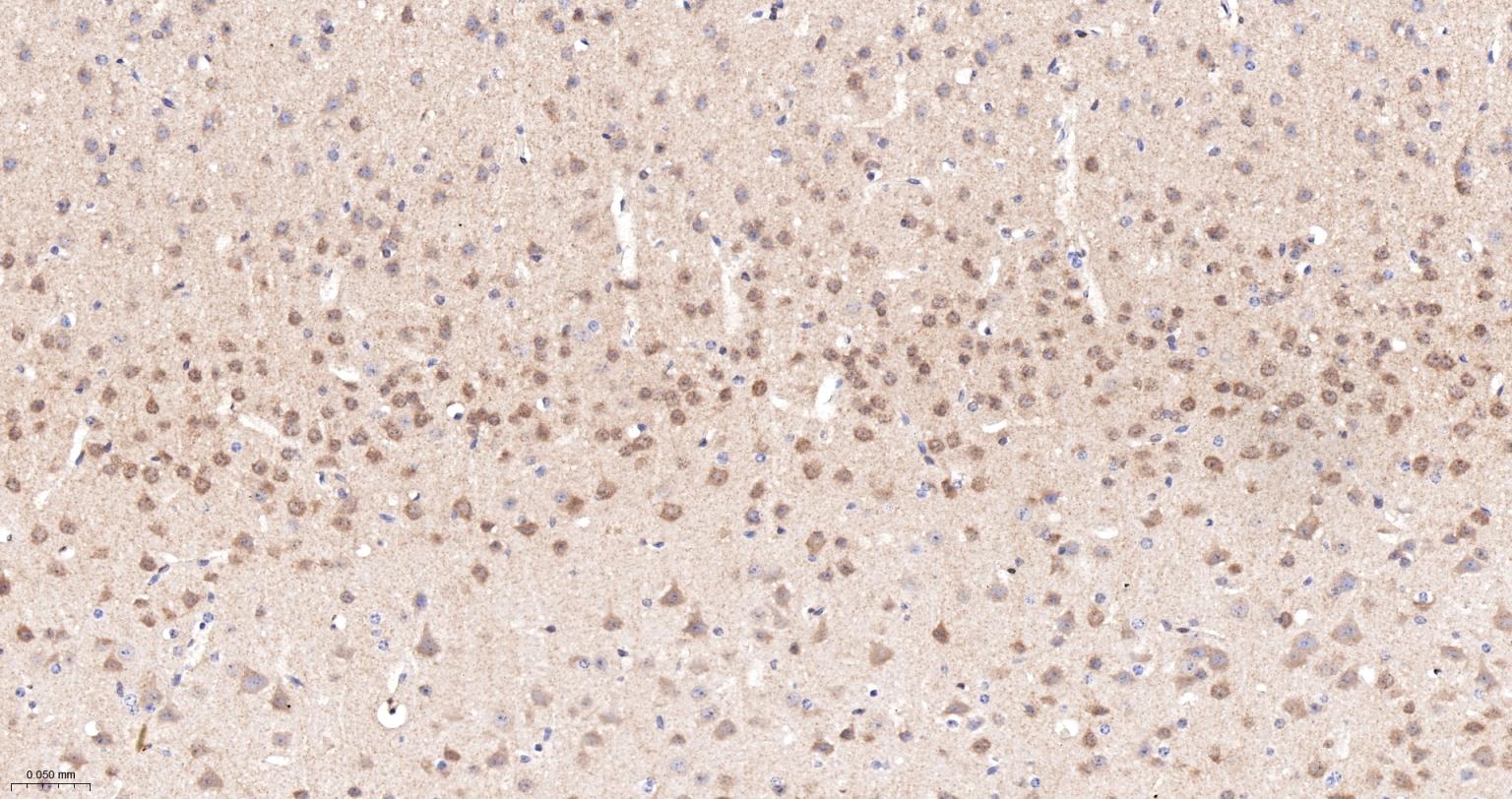 Paraformaldehyde-fixed, paraffin embedded Rat Cerebrum; Antigen retrieval by boiling in sodium citrate buffer (pH6.0) for 15 min; Antibody incubation with PTEN Monoclonal Antibody, Unconjugated(bsm-52369R) at 1:200 overnight at 4°C, followed by conjugation to the bs-0295G-HRP and DAB (C-0010) staining.