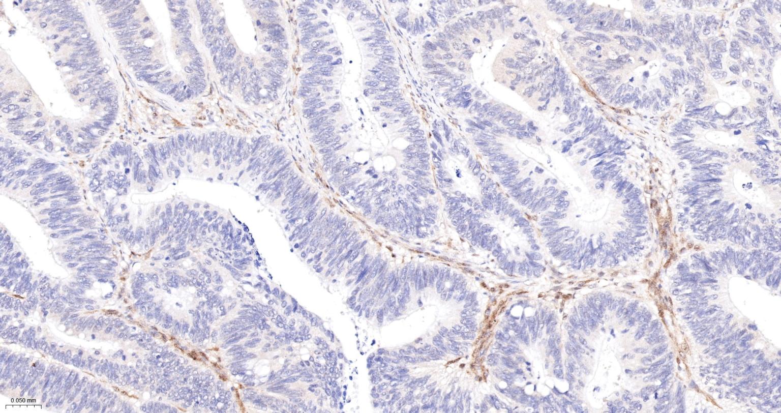 Paraformaldehyde-fixed, paraffin embedded Human Colon Cancer; Antigen retrieval by boiling in sodium citrate buffer (pH6.0) for 15 min; The section was incubated with PTEN Monoclonal Antibody, Unconjugated (bsm-52369R) at 1:200 overnight at 4°C, followed by conjugation to the bs-0295G-HRP and DAB (C-0010) staining.