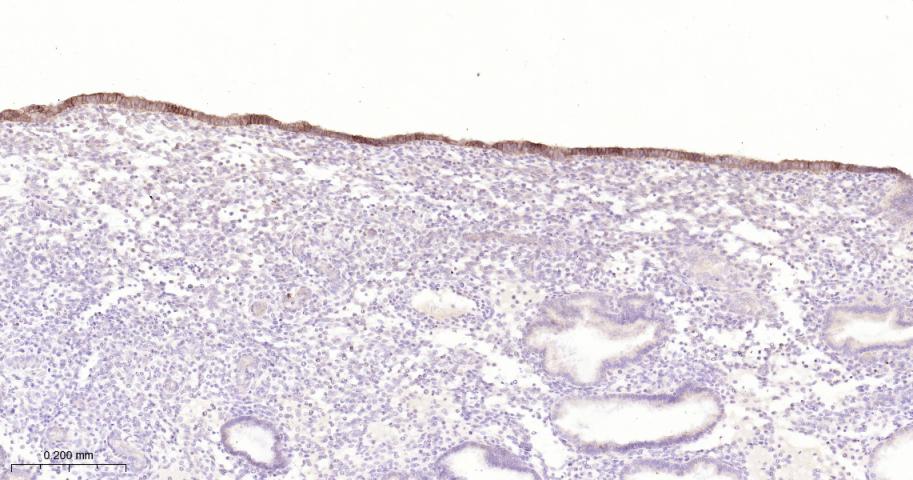 Paraformaldehyde-fixed, paraffin embedded Human Uterus; Antigen retrieval by boiling in sodium citrate buffer (pH6.0) for 15 min; Antibody incubation with CLDN1 Monoclonal Antibody, Unconjugated(bsm-52037M) at 1:200 overnight at 4°C, followed by conjugation to the bs-40296G-HRP and DAB (C-0010) staining.