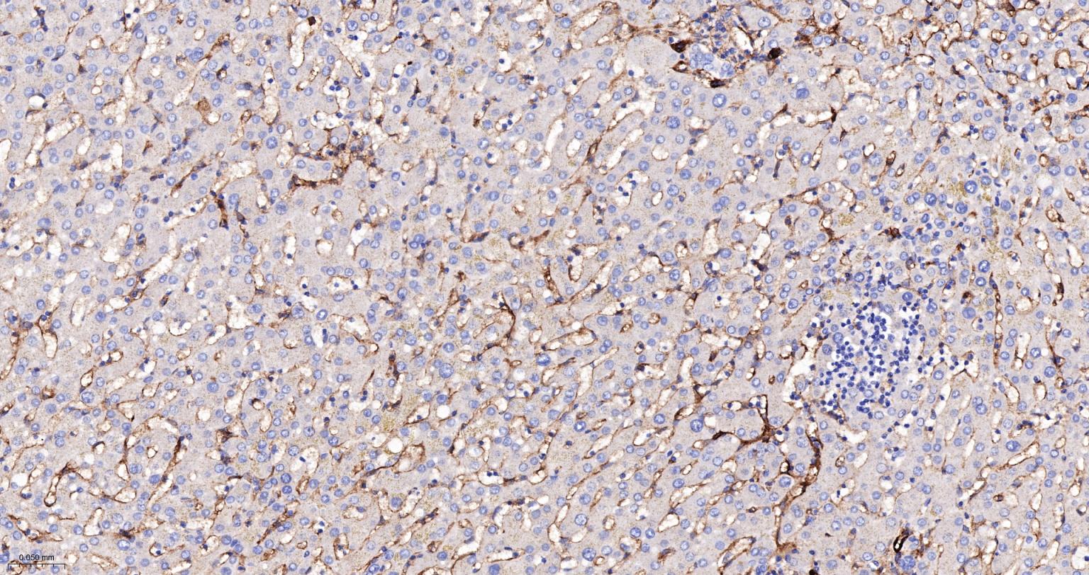 Paraformaldehyde-fixed, paraffin embedded Human Liver; Antigen retrieval by boiling in sodium citrate buffer (pH6.0) for 15 min; The section was incubated with CD105 Polyclonal Antibody, Unconjugated (bs-34063R) at 1:200 overnight at 4°C, followed by conjugation to the bs-0295G-HRP and DAB (C-0010) staining.