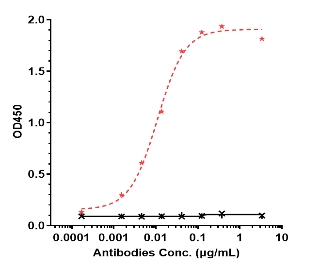 Human IL6R CHO cells were stained with Anti-IL-6Ra / CD126 Reference Antibody (vobarilizumab) and negative control protein respectively, washed and then followed by PE and analyzed with FACS, EC50=1.0090 nM.