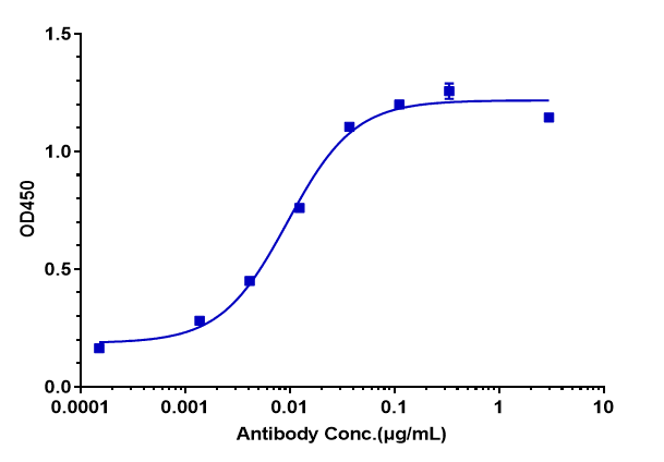 Immobilized Human SCFR / c-Kit / CD117, Fc Tag at 2 ug/mL can bind Anti-SCFR / c-Kit / CD117 Reference Antibody (LOP628), EC50=0.009485 ug/mL.