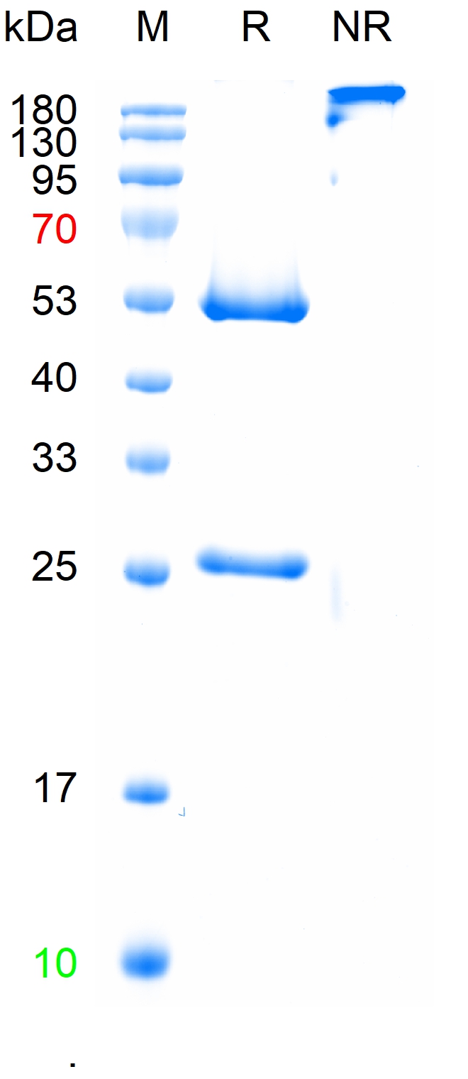 As a monomeric immunoglobulin that is predominately involved in the secondary antibody response and the only isotype that can pass through the human placenta, Immunoglobulin G (IgG) is synthesized and secreted by plasma B cells, and constitutes 75% of serum immunoglobulins in humans. IgG antibodies protect the body against the pathogens by agglutination and immobilization, complement activation, toxin neutralization, as well as antibody-dependent cell-mediated cytotoxicity (ADCC). IgG tetramer contains two heavy chains (5 kDa ) and two light chains (25 kDa) linked by disulfide bonds, that is the two identical halves form the Y-like shape. IgG is digested by pepsin proteolysis into Fab fragment (antigen-binding fragment) and Fc fragment ("crystallizable" fragment). IgG1 is most abundant in serum among the four IgG subclasses (IgG1, 2, 3 and 4) and binds to Fc receptors (FcγR ) on phagocytic cells with high affinity. Fc fragment is demonstrated to mediate phagocytosis, trigger inflammation, and target Ig to particular tissues. Protein G or Protein A on the surface of certain Staphylococcal and Streptococcal strains specifically binds with the Fc region of IgGs, and has numerous applications in biotechnology as a reagent for affinity purification. Recombinant IgG Fc Region is suggested to represent a potential anti-inflammatory drug for treatment of human autoimmune diseases. SWISS: P01857 Gene ID: 3500 |