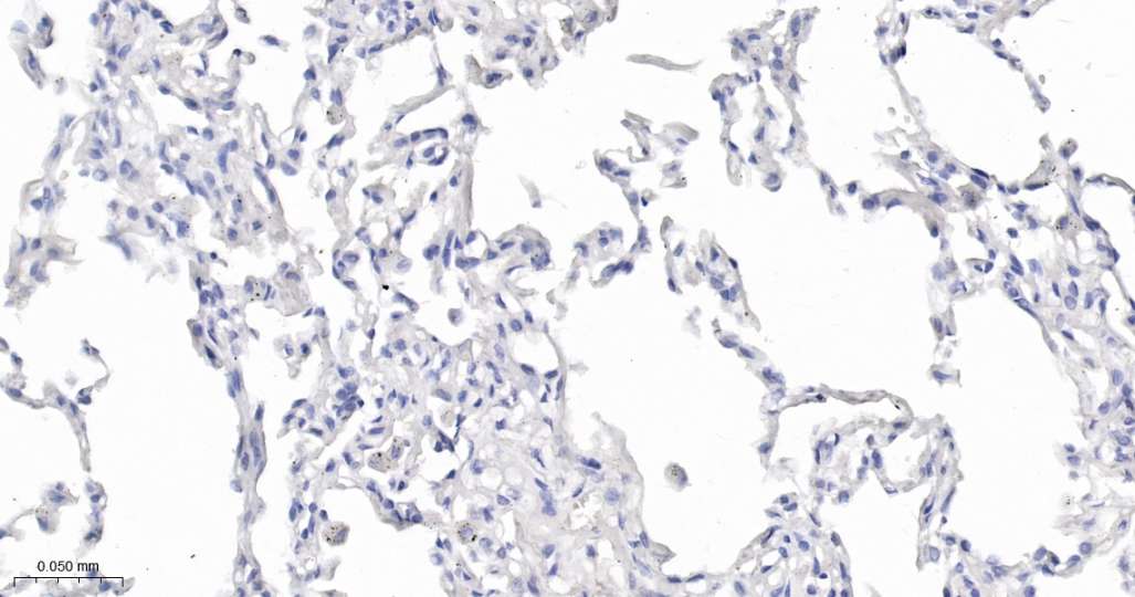 Immunohistochemical analysis of paraffin embedded Human lung tissue slide using IHC0630 (MOG IHC Kit).