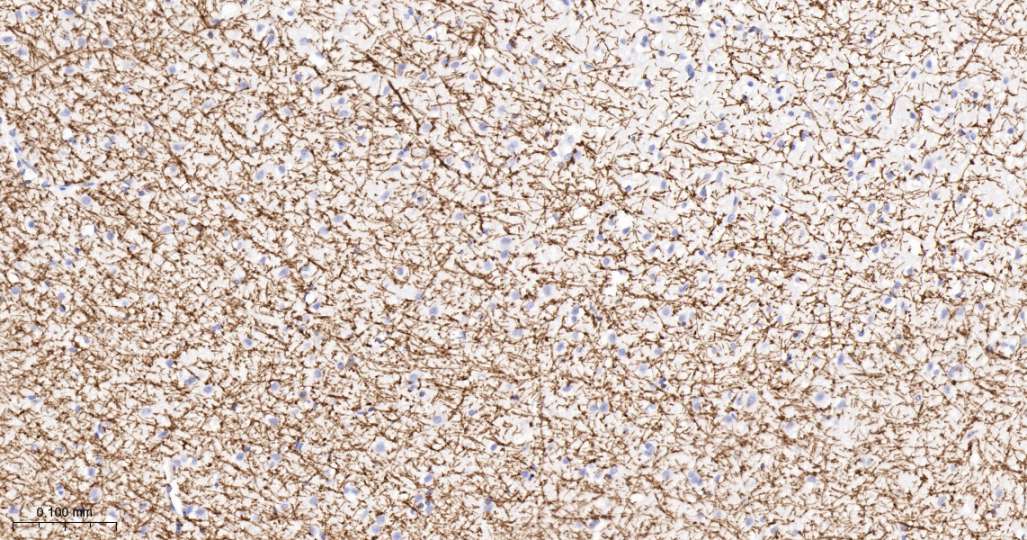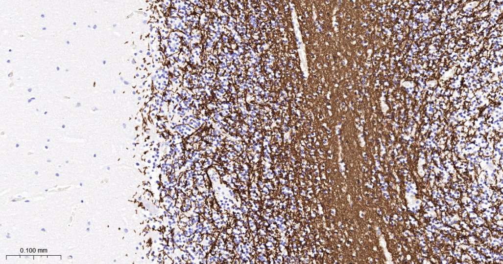 Immunohistochemical analysis of paraffin embedded Human cerebellum tissue slide using IHC0630H (Human MOG IHC Kit).