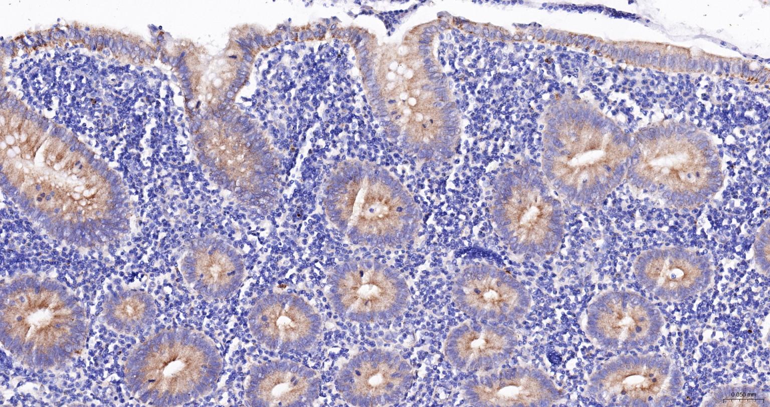 Paraformaldehyde-fixed, paraffin embedded Human purulent appendicitis; Antigen retrieval by boiling in sodium citrate buffer (pH6.0) for 15 min; The section was incubated with IL-37 Polyclonal Antibody, Unconjugated (bs-42561R) at 1:200 overnight at 4°C, followed by conjugation to the bs-0295G-HRP and DAB (C-0010) staining.